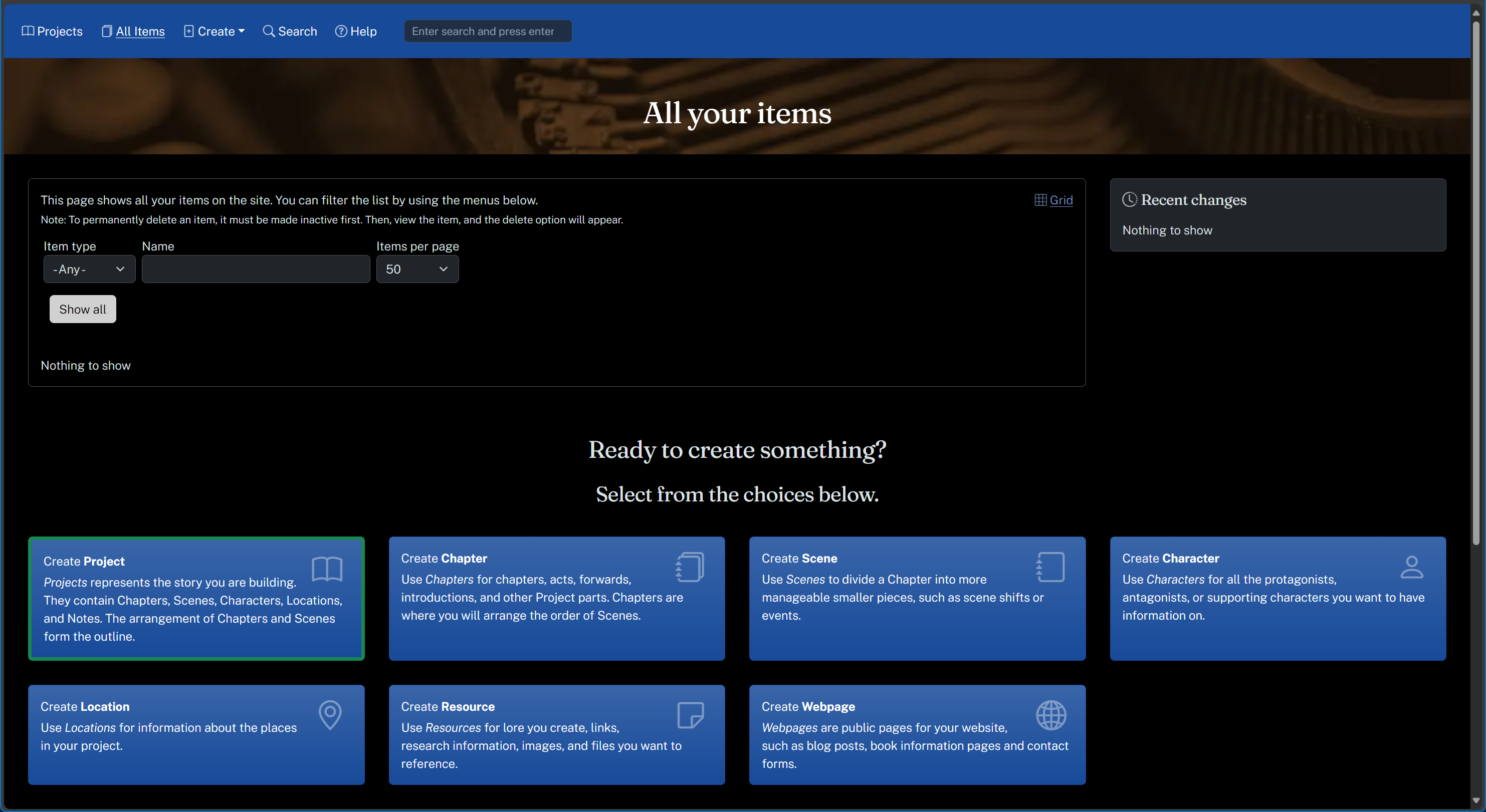 Focus mode, available in your account options, will dim down everything except the individual item you are working on. You can still access everything by hovering (or tapping) on the dimmed section. You can read about our features for neurodivergent authors here. ![]() |